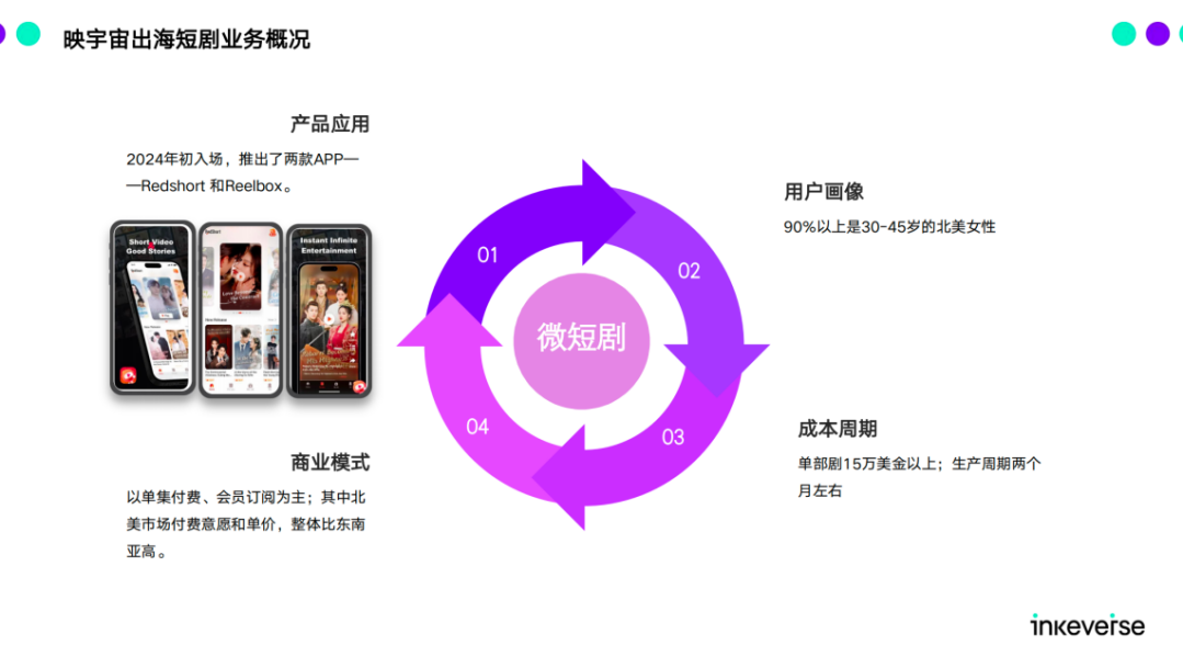 基于国内的成功经验,映宇宙自今年年初开始积极筹备出海布局,陆续面向北美和东南亚市场推出两款APP——RedShort和ReelBox,并从多维度制定了战略性策略,旨在破解“悲喜相通”的核心命题。内容方面,在注重本土文化创作的基础上,找准普世情感共鸣点;制作方面采取“本土化”和“全球化”相结合的方式,即海外创作不能照搬国内的剧情,不能简单的复制粘贴。而是根据各地文化差异,了解用户思维习惯和喜好,安排情节。