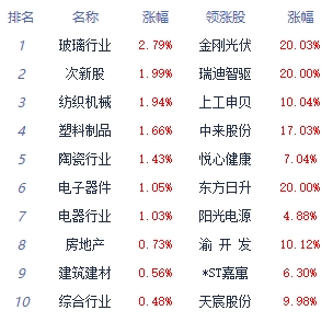 板块方面,房地产服务、电力设备、消费电子等板块涨幅居前,景点及旅游、油气开采及服务、厨卫电器等板块跌幅居前。