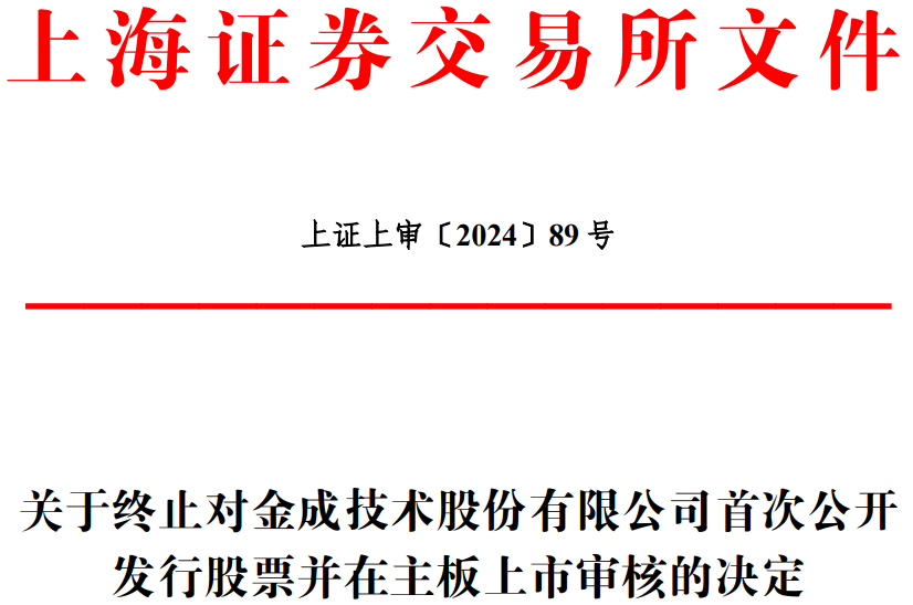 中国经济网北京5月24日讯 上交所网站昨日发布关于终止对金成技术股份有限公司(简称“金成股份”)首次公开发行股票并在主板上市审核的决定。