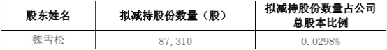 持有公司股份349,240股(占公司总股本比例0.1191%)的高级管理人员魏雪松计划自公告之日起15个交易日后的3个月(2024年6月18日至2024年9月17日)内以集中竞价方式减持公司股份87,310股(占公司总股本比例0.0298%)。