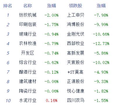 板块方面,互联网电商、电子化学品、物流、厨卫电器等涨幅居前,农业服务、种植业与林业、养殖业、黑色家电等跌幅居前。
