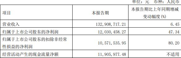 据凯众股份2024年第一季度报告,报告期内,公司实现营业收入1.33亿元,同比增长6.45%;归属于上市公司股东的净利润1203.05万元,同比增长47.34%;归属于上市公司股东的扣除非经常性损益的净利润1057.15万元,同比增长80.20%;经营活动产生的现金流量净额1190.60万元。