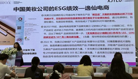 另外,在5月25日的科学家论坛环节,西交利物浦大学在读博士夏静雯女士对其《美丽遇见ESG--美妆企业践行ESG理念的绩效与挑战》一等奖论文进行宣讲,并对国内外美妆集团的ESG绩效进行细致分析。夏女士特别指出,逸仙集团凭借在可持续发展的卓越表现,ESG评级被全球最大指数公司明晟MSCI上调至A级,与雅诗兰黛、宝洁等国际领先企业,及上海家化等国货头部企业位列同一梯队。这标志着逸仙集团在可持续发展领域已达到国际领先水平。ESG评级的上升,反映出逸仙集团在专注科研创新的同时,更坚定践行ESG理念,打造了国货美妆行业可持续发展的新标杆。