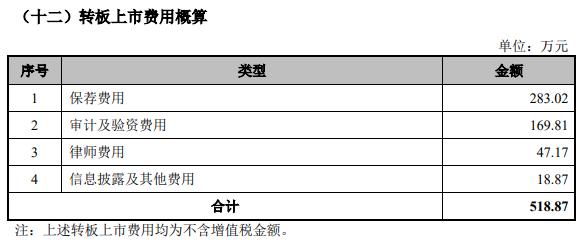 观典防务此次转板上市的保荐机构是中信证券,保荐代表人是赵亮、纪若楠。公司转板上市费用为518.87万元,其中保荐费用283.02万元。