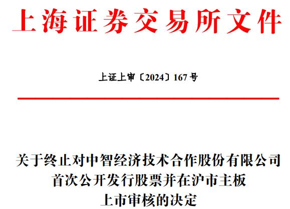 中国经济网北京6月4日讯 上交所网站日前公布关于终止对中智经济技术合作股份有限公司(简称“中智股份”)首次公开发行股票并在沪市主板上市审核的决定。