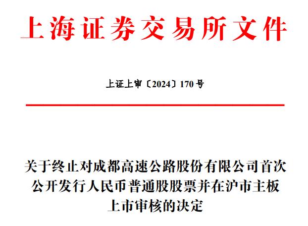 中国经济网北京6月5日讯 据上交所官网消息,上交所决定终止成都高速公路股份有限公司(以下简称“成都高速”)首次公开发行人民币普通股股票并在沪市主板上市审核。