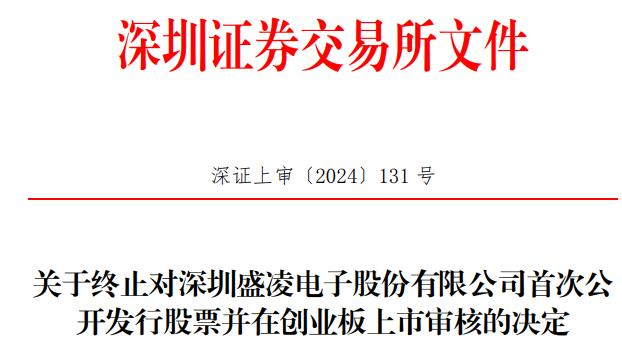 中国经济网北京6月5日讯 深交所网站日前公布关于终止对深圳盛凌电子股份有限公司(简称“盛凌电子”)首次公开发行股票并在创业板上市审核的决定。