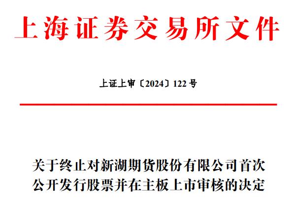 中国经济网北京6月6日讯 据上交所官网消息,上交所决定终止新湖期货股份有限公司(以下简称“新湖期货”)首次公开发行股票并在主板上市审核。