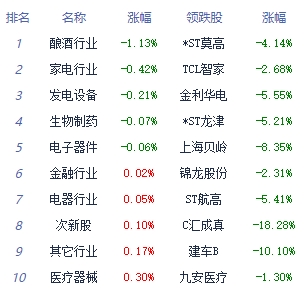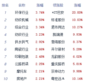 板块方面,房地产服务、环保、零售等板块涨幅居前,其他电子、证券、汽车服务等板块跌幅居前。