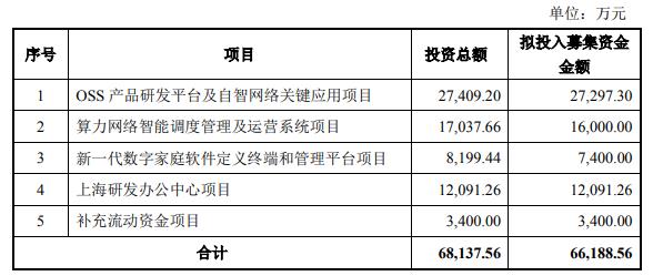 直真科技昨晚发布2024年度向特定对象发行A股股票预案。公司本次发行募集资金总额预计不超过66,188.56万元(含本数),扣除发行费用后的募集资金净额将用于OSS产品研发平台及自智网络关键应用项目、算力网络智能调度管理及运营系统项目、新一代数字家庭软件定义终端和管理平台项目、上海研发办公中心项目、补充流动资金项目。