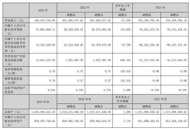 直真科技2023年年度报告显示,报告期内,直真科技全年实现营业收入4.36亿元,同比下滑11.25%;归属于上市公司股东的净利润7786.18万元,同比增长101.85%;归属于上市公司股东的扣除非经常性损益的净利润1454.76万元,同比下滑37.78%;经营活动产生的现金流量净额1360.10万元,同比增长606.41%。