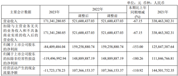 2023年,康为世纪实现营业收入1.71亿元,同比下降67.15%;归属于上市公司股东的净利润-8440.95万元,上年同期为1.59亿元;归属于上市公司股东的扣除非经常性损益的净利润-1.19亿元,上年同期为1.49亿元;经营活动产生的现金流量净额-1172.32万元,上年同期为1.07亿元。