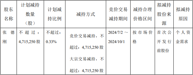 因自身资金需求,友发集团董事张德刚拟自减持计划公告披露之日起15个交易日之后的3个月内,通过集中竞价交易方式或者大宗交易方式减持不超过4,715,250股公司股份,减持股份数量占公司总股本的0.33%,占其持有股份的25%,减持价格视市场价格确定。若减持期间友发集团发生派发红利、送红股、转增股本、增发新股或配股等除权、除息事项,上述减持股份数量将相应进行调整,在此减持期间如遇法律法规规定的窗口期,则不减持。