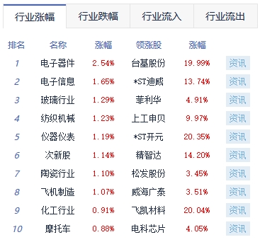 板块方面,半导体及元件、电子化学品、教育等涨幅靠前,贵金属、港口航运、公路铁路运输等跌幅靠前。