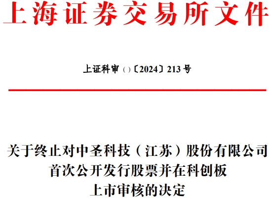 中国经济网北京6月13日讯 上交所网站昨日披露了关于终止对中圣科技(江苏)股份有限公司(以下简称“中圣科技”)首次公开发行股票并在科创板上市审核的决定。