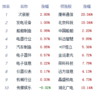 板块方面,半导体及元件、黑色家电、自动化设备等板块涨幅居前,贵金属、汽车服务、煤炭开采加工等板块跌幅居前。