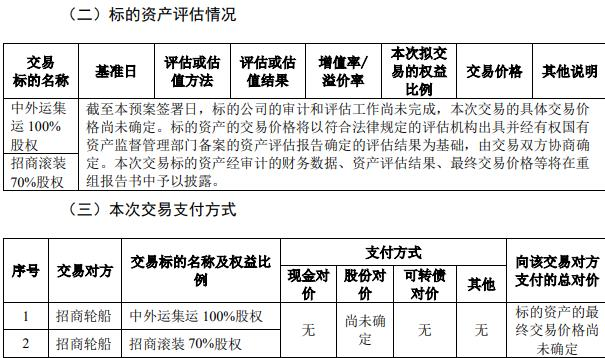 公司同日披露《发行股份购买资产暨关联交易预案》,安通控股拟向招商轮船(601872.SH)发行股份购买其持有的中外运集运100%股权和招商滚装70%股权。本次交易的股份发行方式为向特定对象发行,发行对象为招商轮船。截至预案签署日,标的公司的审计和评估工作尚未完成,本次交易的具体交易价格尚未确定。
