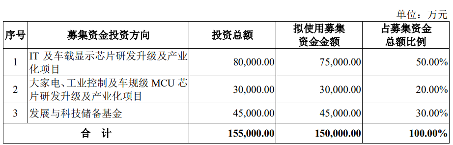 信芯微原拟在上交所科创板发行的股票数量不超过108,170,000股,不低于本次发行后总股本的25%,不涉及股东公开发售股份。公司原拟募集资金150,000.00万元,用于“IT及车载显示芯片研发升级及产业化项目”、“大家电、工业控制及车规级MCU芯片研发升级及产业化项目”、“发展与科技储备基金”。