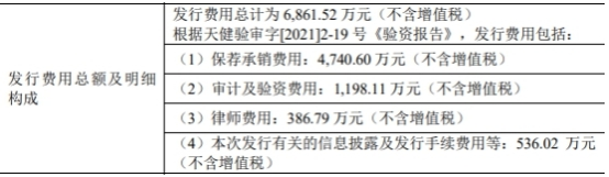 华纳药厂本次发行费用总计为6861.52万元(不含增值税),其中,西部证券股份有限公司获得保荐承销费用4740.60万元。