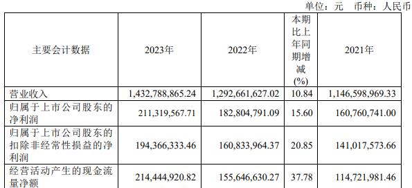 据华纳药厂2023年年报,报告期内,公司实现营业收入14.33亿元,同比增长10.84%;归属于上市公司股东的净利润2.11元,同比增长15.60%;归属于上市公司股东的扣除非经常性损益的净利润1.94亿元,同比增长20.85%;经营活动产生的现金流量净额2.14亿元,同比增长37.78%。