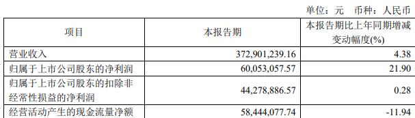 据华纳药厂2024年第一季度报告,报告期内,公司实现营业收入3.73亿元,同比增长4.38%;归属于上市公司股东的净利润6005.31万元,同比增长21.90%;归属于上市公司股东的扣除非经常性损益的净利润4427.89万元,同比增长0.28%;经营活动产生的现金流量净额5844.41万元,同比减少11.94%。