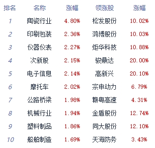 A股市场板块及个股涨跌幅排行