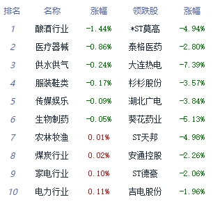 板块方面,计算机设备、通信设备、仪器仪表等板块涨幅居前,厨卫电器、医疗服务、饮料制造等板块跌幅居前。