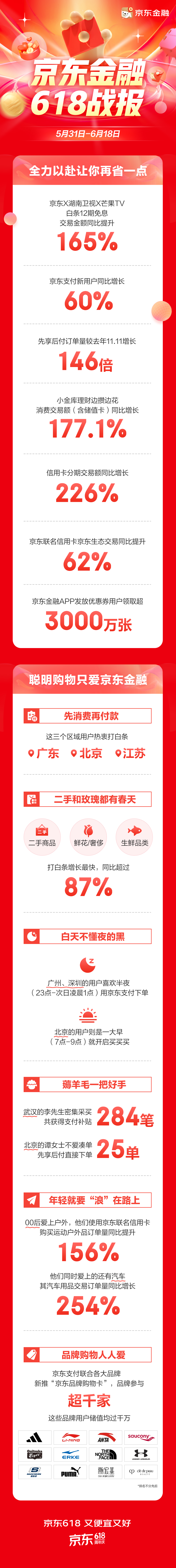 京东金融618成绩单来了,京东支付新用户同比增长60%、京东联名信用卡交易额同比提升62%、京东金融App优惠券领取超3000万张,巅峰28小时京东白条12期免息交易金额同比提升165%,实打实的金融补贴为消费者着实省了不少钱。