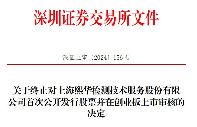 日前,熙华检测向深交所提交了《上海熙华检测技术服务股份有限公司关于撤销首次公开发行股票并在创业板上市的申请报告》,保荐人向深交所提交了《中信证券股份有限公司关于撤销上海熙华检测技术服务股份有限公司首次公开发行股票并在创业板上市申请文件的申请》。根据《深圳证券交易所股票发行上市审核规则(2024年修订)》第六十二条的有关规定,深交所决定终止对熙华检测首次公开发行股票并在创业板上市的审核。