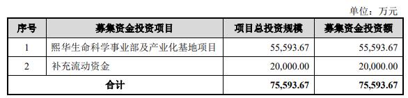 熙华检测本次拟公开发行股票的总量不超过4,420.00万股,不涉及老股东公开发售股份,公开发行股份数量不低于本次发行后已发行股份总数的10%。熙华检测原拟募集资金75,593.67万元,分别用于熙华生命科学事业部及产业化基地项目、补充流动资金。