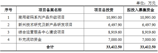渔翁信息拟在上交所科创板发行股票数量不低于发行后公司股份总数的25%,不超过1,846.4320万股(本次公开发行的股票全部为新股,不进行老股转让)。渔翁信息原拟募集资金33,412.50万元,用于商用密码系列产品升级项目、新兴技术研究及新产品研发项目、综合运营服务中心建设项目、补充流动资金。
