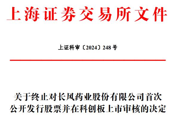 长风药业终止科创板IPO 原拟募资15亿元中信证券保荐