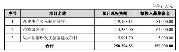 长风药业本次发行的股票数量不超过8,000万股(不含采用超额配售选择权发行的股票数量),公开发行股份数量不低于本次发行后总股本的10%;本次发行不涉及原股东公开发售股份的情况;本次发行可以采用超额配售选择权,超额配售部分不超过本次公开发行股票数量的15%。长风药业原拟募集资金150,000.00万元,分别用于新建生产吸入制剂等项目、药物研发项目、吸入制剂研发实验室建设项目。