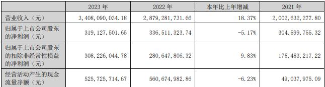 据钢研高纳2023年年报,报告期内,公司实现营业收入34.08亿元,同比增长18.37%;归属于上市公司股东的净利润3.19亿元,同比减少5.17%;归属于上市公司股东的扣除非经常性损益的净利润3.08亿元,同比增长9.83%;经营活动产生的现金流量净额5.26亿元,同比减少6.23%。