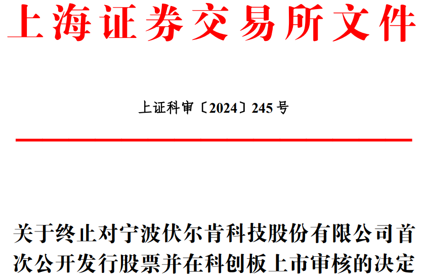 上交所于2023年6月30日依法受理了伏尔肯首次公开发行股票并在科创板上市的申请文件,并按照规定进行了审核。日前,伏尔肯和保荐人华泰联合证券有限责任公司向上交所提交了《宁波伏尔肯科技股份有限公司关于撤回首次公开发行股票并在科创板上市申请文件的申请》和《华泰联合证券有限责任公司关于撤回宁波伏尔肯科技股份有限公司首次公开发行股票并在科创板上市申请文件的申请》,申请撤回申请文件。根据《上海证券交易所股票发行上市审核规则》第六十三条的有关规定,上交所决定终止对伏尔肯首次公开发行股票并在科创板上市的审核。