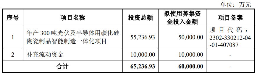 伏尔肯原拟在上交所科创板公开发行股票1,836.00万股,占发行后总股本的比例为25%。本次发行全部为新股发行,不涉及股东公开发售股份的情形。公司原拟募集资金60,000.00万元,用于年产300吨光伏及半导体用碳化硅陶瓷制品智能制造一体化项目、补充流动资金。