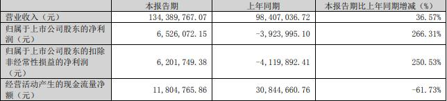 据宝莫股份2024年第一季度报告,报告期内,公司实现营业收入1.34亿元,同比增长36.57%;归属于上市公司股东的净利润652.61万元,同比增长266.31%;归属于上市公司股东的扣除非经常性损益的净利润620.17万元,同比增长250.53%;经营活动产生的现金流量净额1180.48万元,同比减少61.73%。