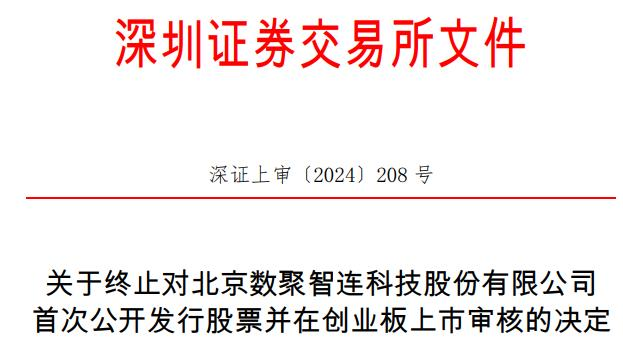 中国经济网北京7月10日讯 深交所网站日前公布关于终止对北京数聚智连科技股份有限公司(简称“数聚智连”)首次公开发行股票并在创业板上市审核的决定。