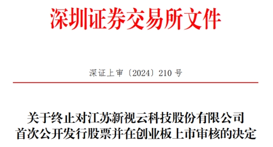 中国经济网北京7月11日讯 深交所网站昨日公布关于终止对江苏新视云科技股份有限公司(以下简称“新视云”)首次公开发行股票并在创业板上市审核的决定。
