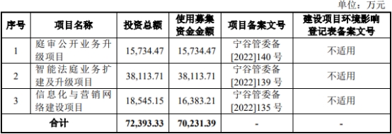新视云原拟在深交所创业板公开发行股票不超过1,333.34万股,占发行后总股本的比例不低于25%。本次发行全部为新股发行,不涉及股东公开发售股份的情形。公司原拟募集资金70,231.39万元,分别用于庭审公开业务升级项目、智能法庭业务扩建及升级项目、信息化与营销网络建设项目。