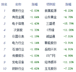 A股市场板块及个股涨跌幅排行