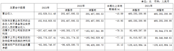 2023年,公司实现营业收入1.83亿元,同比下降10.89%;归母净利润为-2.87亿元,上年同期为-1.60亿元;扣非净利润为-2.86亿元,上年同期为-1.61亿元;经营活动产生的现金流量净额为-6256.57万元,上年同期为-9642.86万元。