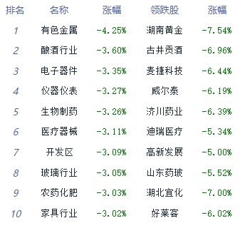 A股市场板块及个股涨跌幅排行