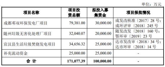 海诺尔原拟在深交所创业板公开发行不超过3,650万股,占发行后总股本的比例不低于25%;原拟募资100,000.00万元,用于成都邓双环保发电厂项目、随州垃圾无害化处理厂项目、宣汉县生活垃圾焚烧发电项目、补充流动资金。