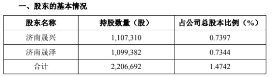 公告显示,济南晟兴及其一致行动人济南晟泽分别持有能辉科技1,107,310股(占公司总股本的0.7397%)、1,099,382股(占公司总股本的0.7344%),计划自公告披露之日起十五个交易日后的三个月内通过集中竞价交易方式各减持公司股份不超过748,400股(占公司总股本的0.5%),合计减持公司股份不超过1,496,800股(占公司总股本的0.9999%)(合计比例与各分项值之和尾数不符系由四舍五入造成,下同)。