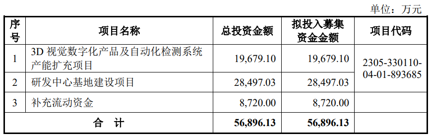 思看科技拟在上交所科创板发行股票数量不超过1,700万股,且占发行后总股本的比例不低于25%,本次发行不涉及股东公开发售。公司拟募集资金56,896.13万元,用于3D视觉数字化产品及自动化检测系统产能扩充项目、研发中心基地建设项目、补充流动资金。