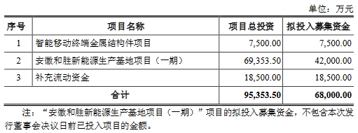 和胜股份昨日晚间披露《2024年度向特定对象发行A股股票预案》。公司本次向特定对象发行股票的募集资金总额不超过68,000.00万元(含本数),扣除发行费用后的募集资金净额将用于智能移动终端金属结构件项目、安徽和胜新能源生产基地项目(一期)、补充流动资金。