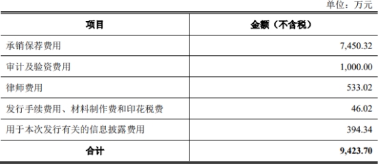 奥海科技发行费用总额为9,423.70万元(不含税),其中承销保荐费用7,450.32万元。
