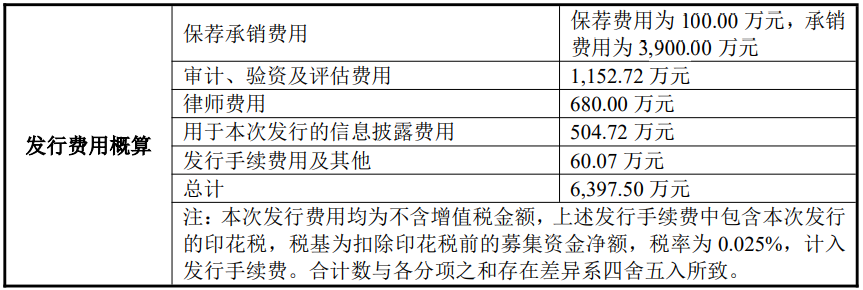 龙图光罩公开发行新股的发行费用合计6,397.50万元,其中保荐费用为100.00万元、承销费用为3,900.00万元。