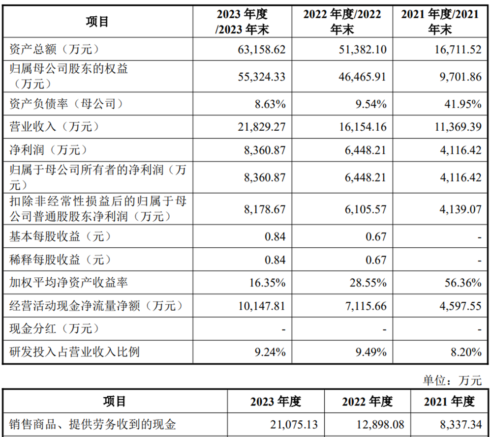上述同期,公司销售商品、提供劳务收到的现金分别为8,337.34万元、12,898.08万元和21,075.13万元,经营活动现金净流量净额分别为4,597.55万元、7,115.66 万元和 10,147.81万元。